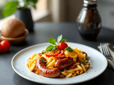 Weisswurstfrühstück is a beloved Bavarian breakfast tradition, showcasing Germany's culinary heritage. Originating from Munich, this meal features Weisswurst—delicate, pale veal sausages flavored with parsley, lemon, and spices—served freshly poached alongside soft pretzels (Brezn), sweet Bavarian mustard (Süßer Senf), and sometimes a wheat beer. The taste is mild, aromatic, and subtly sweet, making it a favorite for locals and international visitors alike. In Germany, Weisswurstfrühstück is often enjoyed mid-morning, reflecting a relaxed, communal start to the day. The sausages are traditionally eaten before noon to ensure freshness, as they contain no preservatives. This meal is not only a celebration of Bavarian culture, but also a delicious way to experience authentic German flavors. By preparing Weisswurstfrühstück at home, you can savor the essence of Bavaria, while opting for a healthier version that balances protein, fiber, and reduced fat.